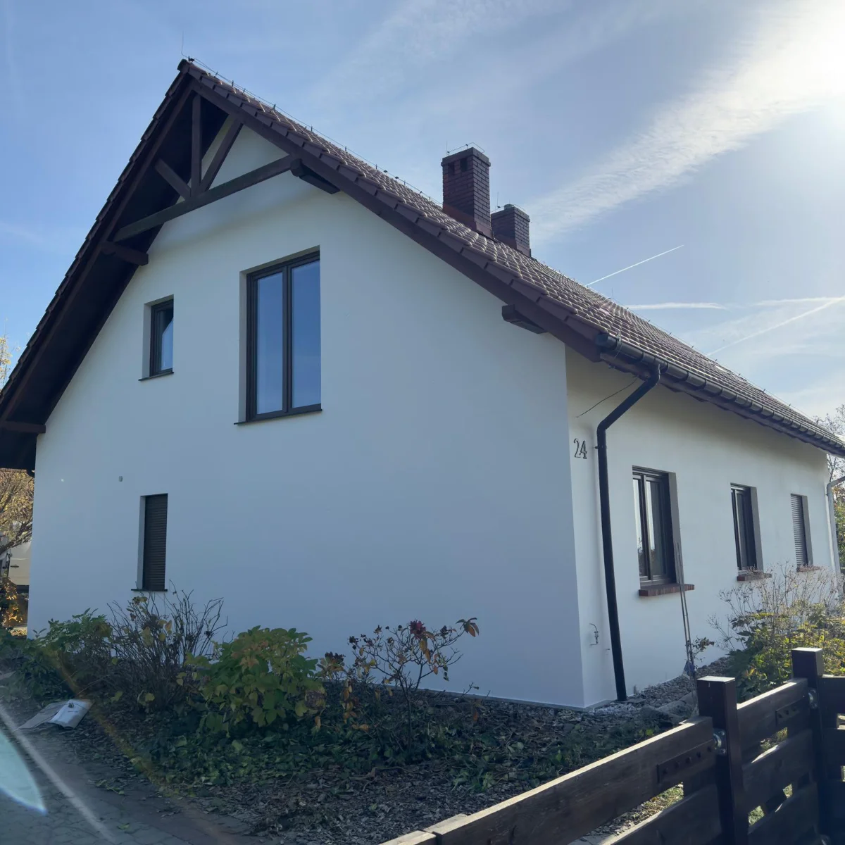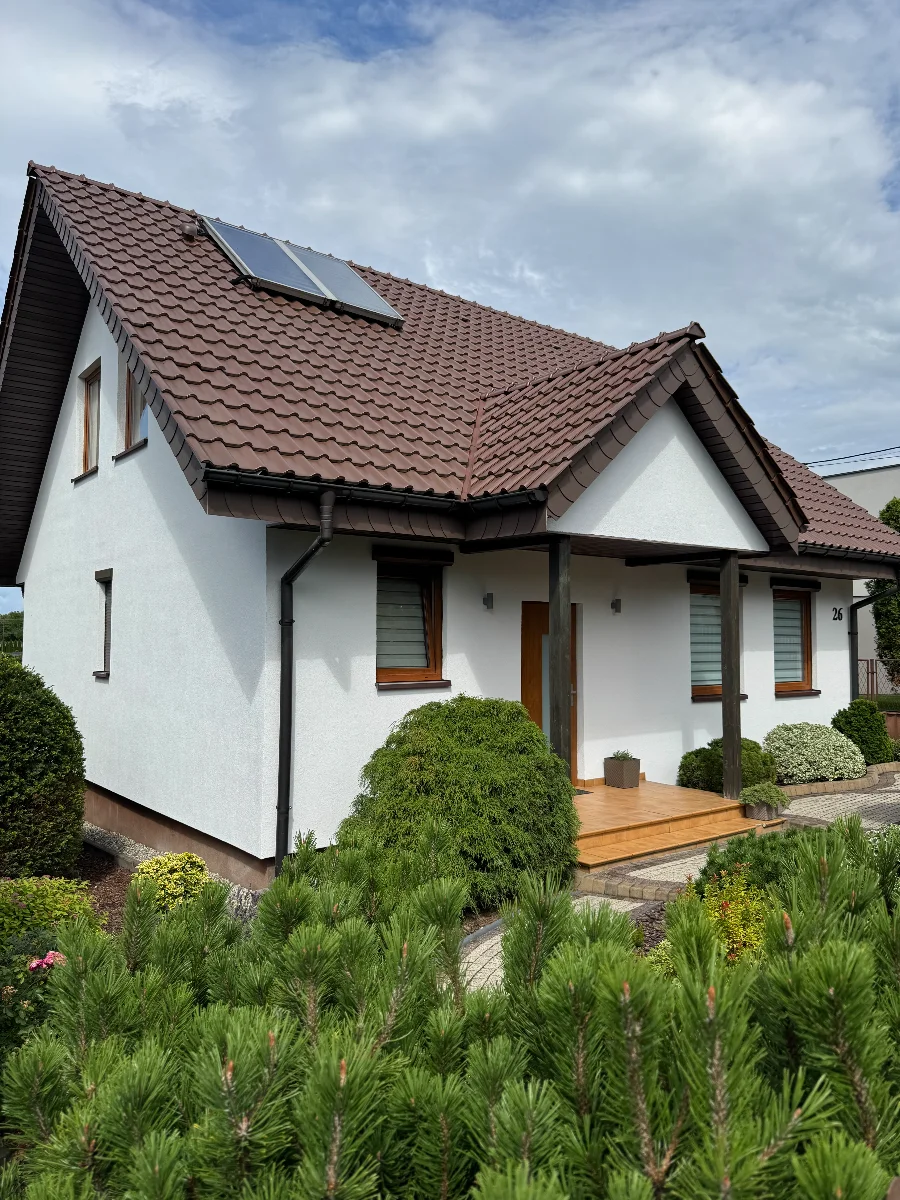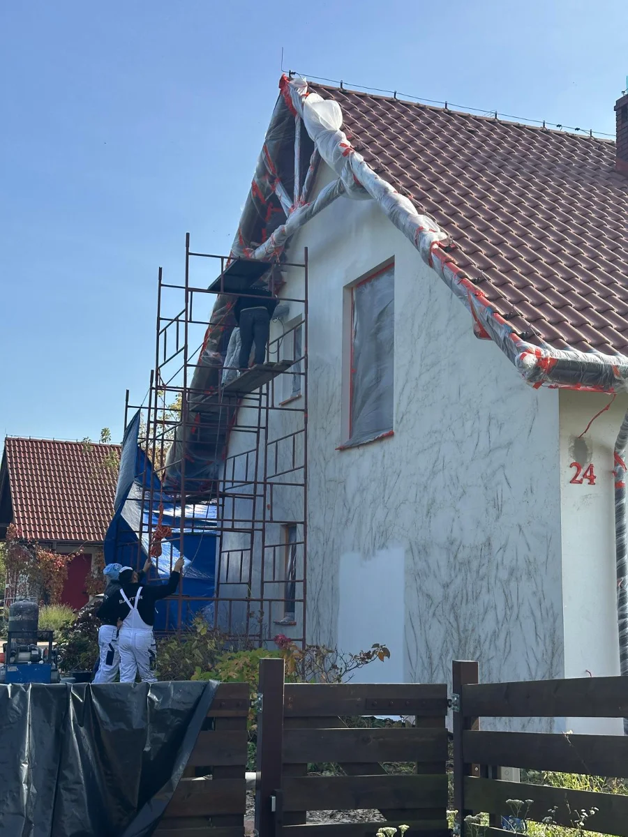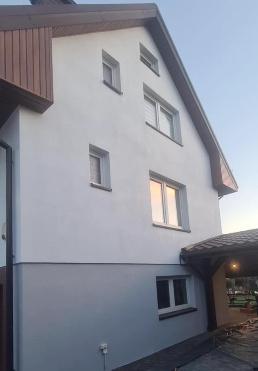 Budynek zyskał nową, estetyczną elewację oraz solidną warstwę termoizolacji Bauter. Dzięki temu dom szybciej się nagrzewa zimą i dłużej utrzymuje chłód latem, zapewniając domownikom komfort przez cały rok.