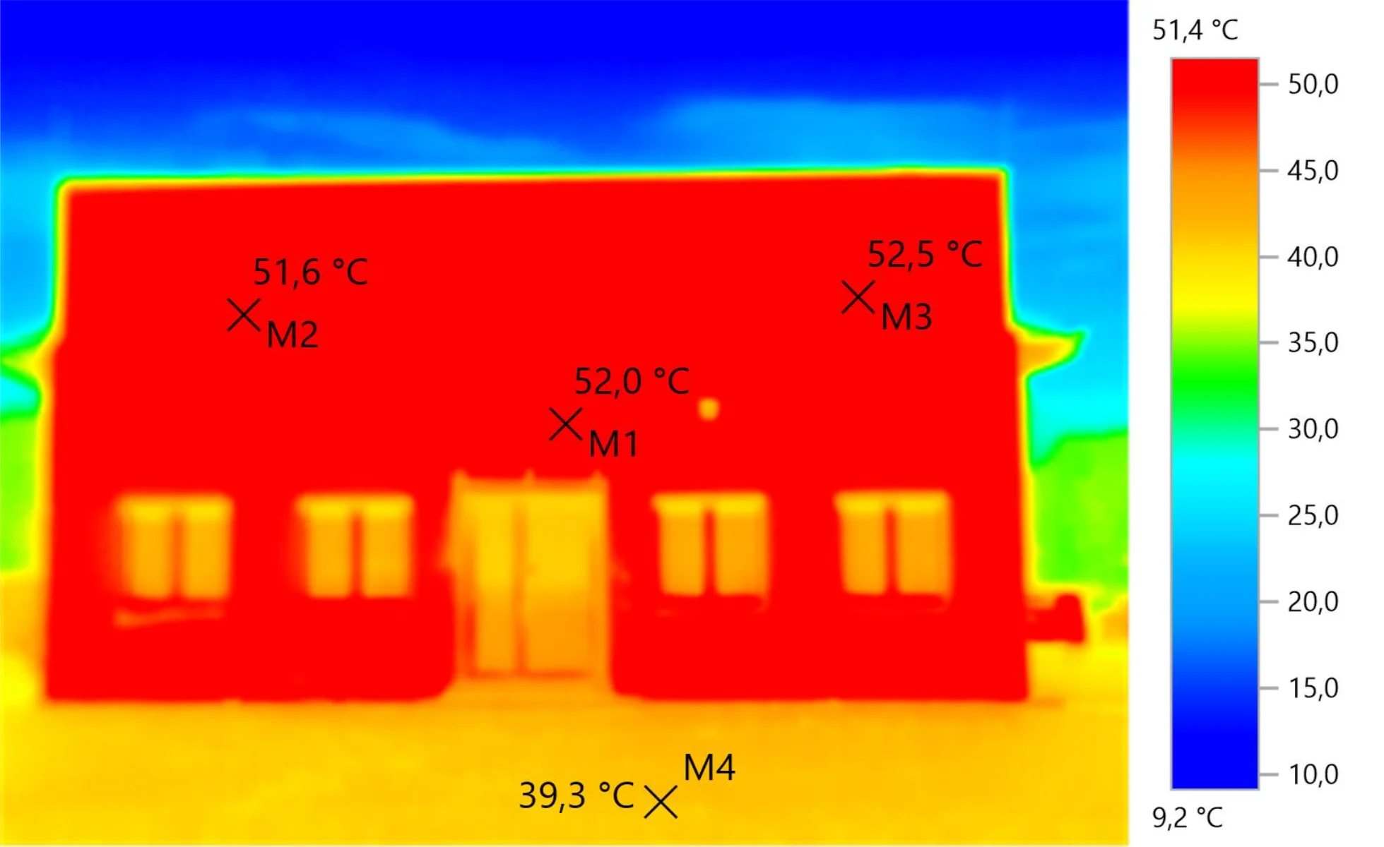 Elewacja domu z naniesioną powłoką Termoizolacja odbijającą promienie słoneczne