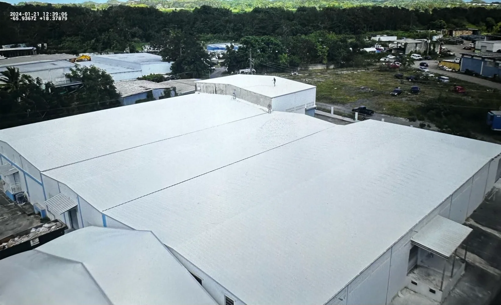 Hala przemysłowa której izolacja miała na cele obniżenie temperatury wewnątrz obiektu, zmniejszając przy tym nakłady finansowe na klimatyzowanie i chłodzenie.
